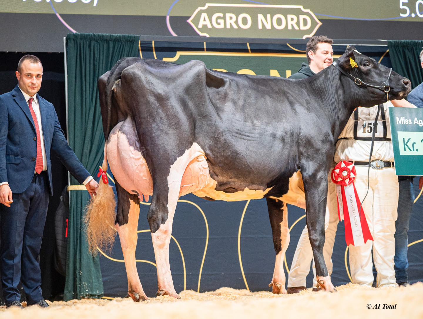 Dueholm Otto Olympia EX-90-DK was crowned as the Supreme Champion of the Agro Nord Show 2026!! Dueholm Breeding I/S took home several titles, including the Reserve Udder Champion, Best Herd Group and the Grand Champion! Dueholm Otto Olympia is sired by Otto JBT. He is a King Doc son @ Ascol and bred by Gaec Toullec, France. JBT Otto his dam is JB Toullec Millehot VG-87-FR 2yr., she is a Millenium daughter out of JB Toullec Hot Cherry EX-90-FR EX-92-MS 5yr. Hot Cherry EX-90 is sired by Dempsey and dam to Disanto (s. Doorman) @ VOST. He is from a deep French cow family with 13 generations VG- or Excellent dams and from the same family as Carf Emeraude EX-91-NL and the 2x French cow of the Year: Amarante EX-FR.