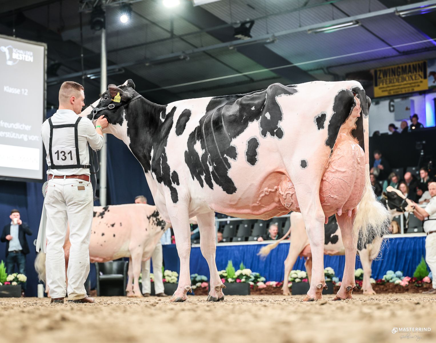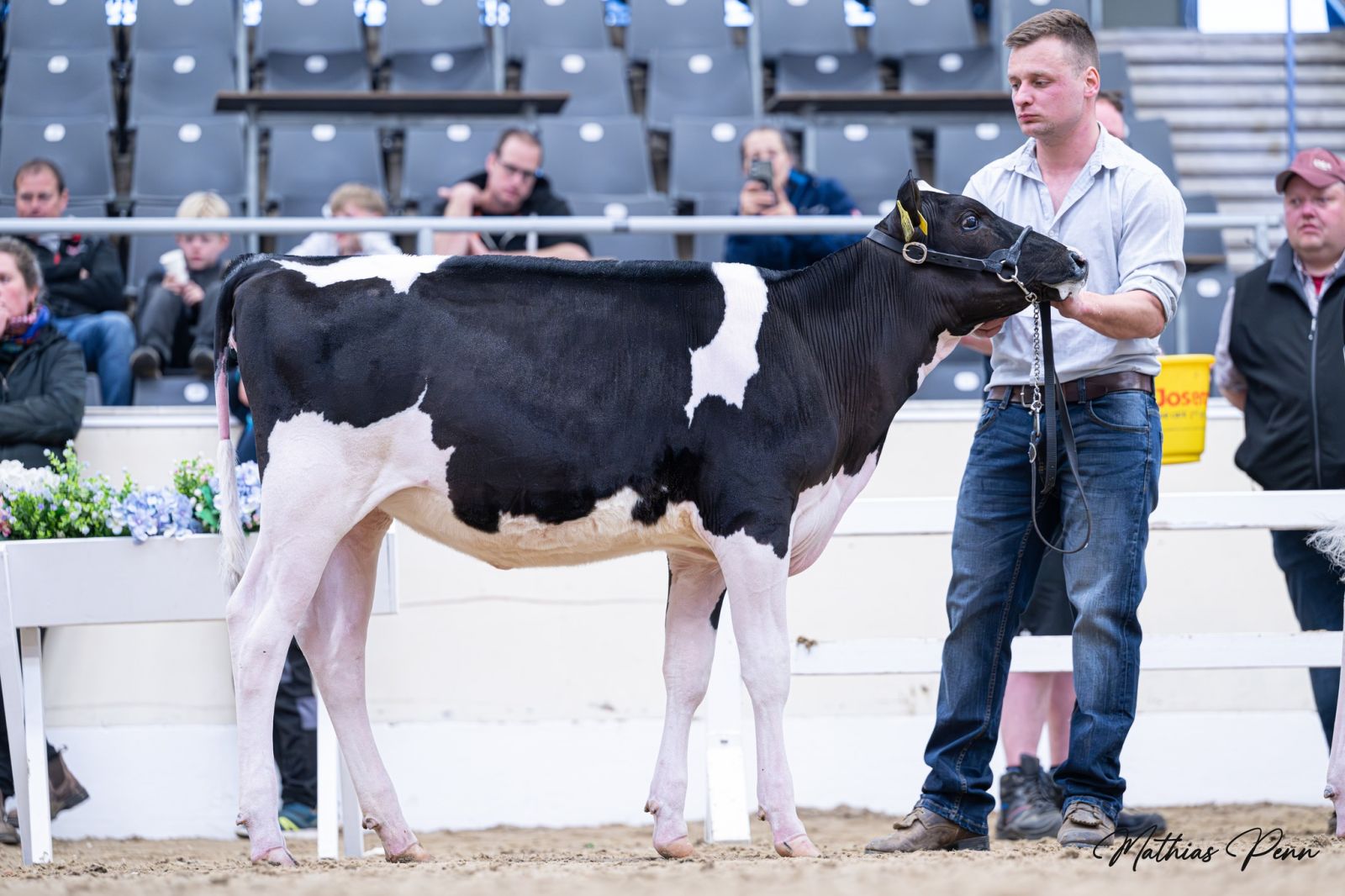 She was 3rd in her class last weekend at the Jungzüchter Triathlon 2026, Germany: Loh Maybellene. This fancy Aaron daughter, owned by Loh-An Holsteins, Schönhof Holsteins & Yasin Zeh has a bright future with an amazing pedigree. Her dam is LOH SCH Lambda Mojito EX-90-DE, she was 2nd in her class at the Schau der Besten 2026, 2nd in her class at the Schau der Besten 2024, 2yr. old Champion Kreistierschau 2024 and Reserve Junior Champion Masterrind Typ Cup 2022. Mojito EX-90 her dam is ROL Diamondback Moongirl *RC EX-90-DE out of GHH Gold Chip Moonlight EX-90-DE. She is from the same family as the Reserve Intermediate Champion Schau der Besten 2020, 2yr. old Champion Schau der Besten 2019 and Reserve Champion 2yr. old German Dairy Show 2019: WFD Miss Diamond EX-92-DE!