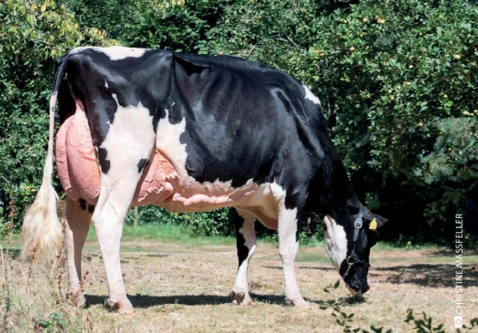 Giessen Charity 138 VG-89-NL 2yr. (MAX), she won as 2yr. old many different titles, like: 2yr. old Champion National NRM-Show '19 & HHH-Show '18, 2yr. old Champion RSN Show '19, 2yr. old Champion Wintershow Wanneperveen '18, 5th place at the European Show Libramont '19 and more! Her daughter, sired by Moovin *RC, Giessen Charity 253 following her footsteps with great results at her first show as a milker, very fresh and in the youngest milking class of the National HHH-Show '22. She won her class and became 2yr. old Champion Black&White! These amazing showwinning cows are tracing back to the 4x Grand Champion: Brookview Tony Charity EX-97-USA. Grand dam to the Moovin *RC daughter was Grand Champion Wintershow Pesse '19: Giessen Charity 37 EX-91-NL.