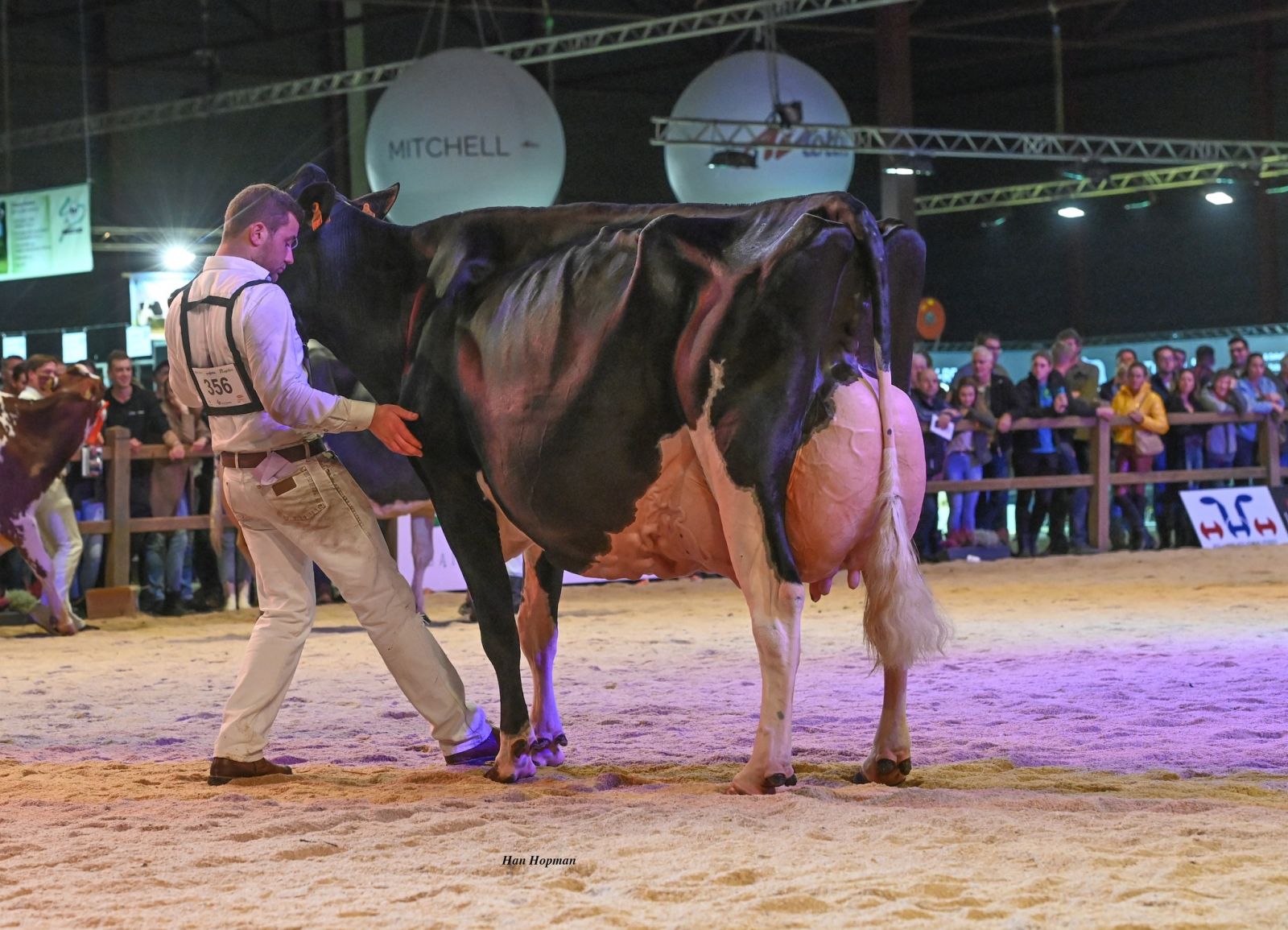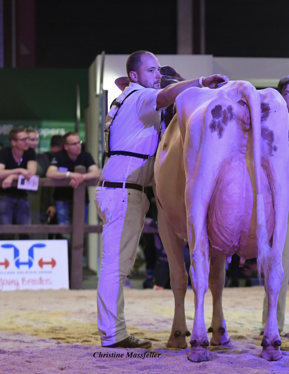 After three years of Covid-19 was it last weekend time for one of the greatest Holstein shows in The Netherlands: the Holland Holstein Show in Leeuwarden! The Grand Champion of the B&W show went to Heerenbrink Angelina (s. Devour). The Grand Champion ribbons of the R&W Holstein show went to Heerenbrink Truus 4 (s. Apple). The Senior Champion B&W title was for Galys-Vray EX-94-CH her daughter: Mattenhof Solomon Ghardaia EX-90-CH EX-MS. The stunning Solomon daughter is co-owned by Dueholm Breeding (DK)! In the oldest class with B&W cows became Drakkar Bulona EX-93-NL 1st in her class and Reserve Senior Champion B&W cows. She is co-owned by Hullcrest Holsteins. The 2yr. old Champion B&W was for Giessen Charity 253. She is a young and early Moovin *RC 2yr. old straight out of Giessen Charity 138 (s. Atwood). Giessen Charity 138 VG-89-NL 2yr. (MAX). became 3rd in her class with B&W Senior Cows. JK Eder DG Carmen 5 became Reserve 2yr. old B&W Champion. The Intermediate Champion B&W is Heerenbrink Angelina (s. Devour), owned by Heerenbrink Holsteins. The Reserve Intermediate Champion title was for the silky black Bolleholster Solo Mae.